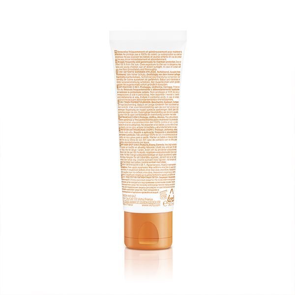 Grâce à son fini non gras, la crème Vichy Idéal Soleil est très agréable à appliquer. Très polyvalente, cette crème anti taches combine 3 actions :