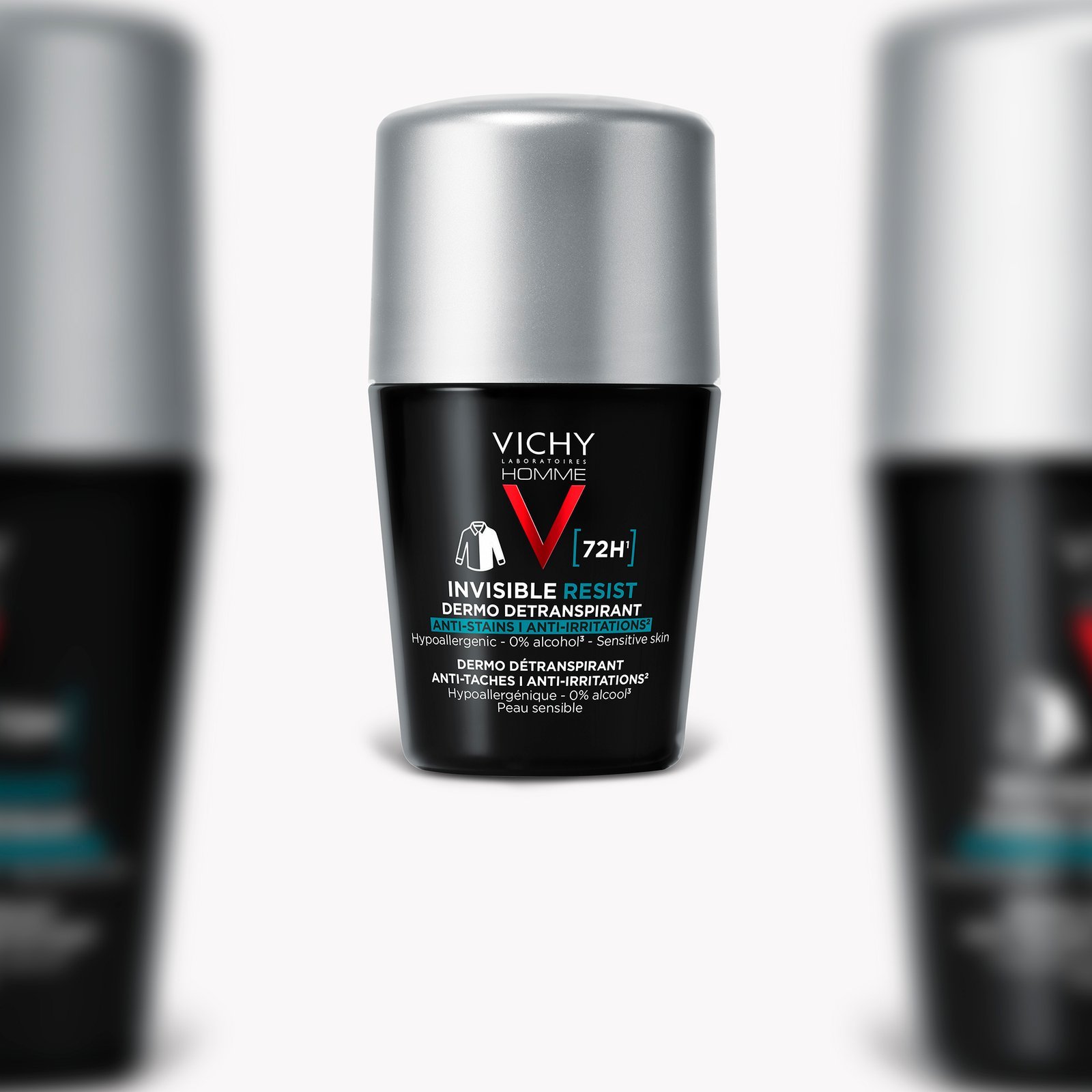 Le dermo-détranspirant Vichy Homme Invisible Resist 72h, formulé spécialement pour les hommes, associe efficacité grâce à son action anti-humidité et anti-odeur et une tolérance optimale avec sa formule sans alcool hypoallergénique testée sur peau sensible pour une action anti-irritations. Sa technologie Invisi-Lock approuvée par l’IFTH (Institut Français du Textile et de l’Habillement) prévient l’apparition de traces jaunes sur les textiles clairs, blanches sur les textiles foncés et des résidus qui peuvent les rigidifier. Les bénéfices de sa technologique de pointe unique est cliniquement prouvée est approuvée par 90% des utilisateurs qui le juge efficace contre les mauvaises odeurs.