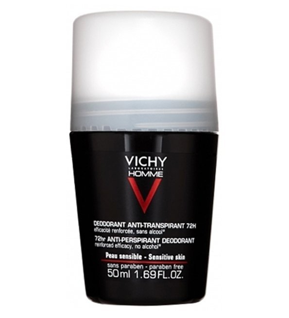 Le déodorant pour homme de Vichy contribue à réguler la transpiration des aisselles tout en neutralisant les mauvaises odeurs. Sa texture fluide et son format bille offrent une application facile et une pénétration rapide. Le déodorant anti-transpirant de Vichy ne tache pas. Il a été formulé pour ne pas laisser de traces blanches sur les habits de couleurs, ni de marques jaunes sur les vêtements blancs.